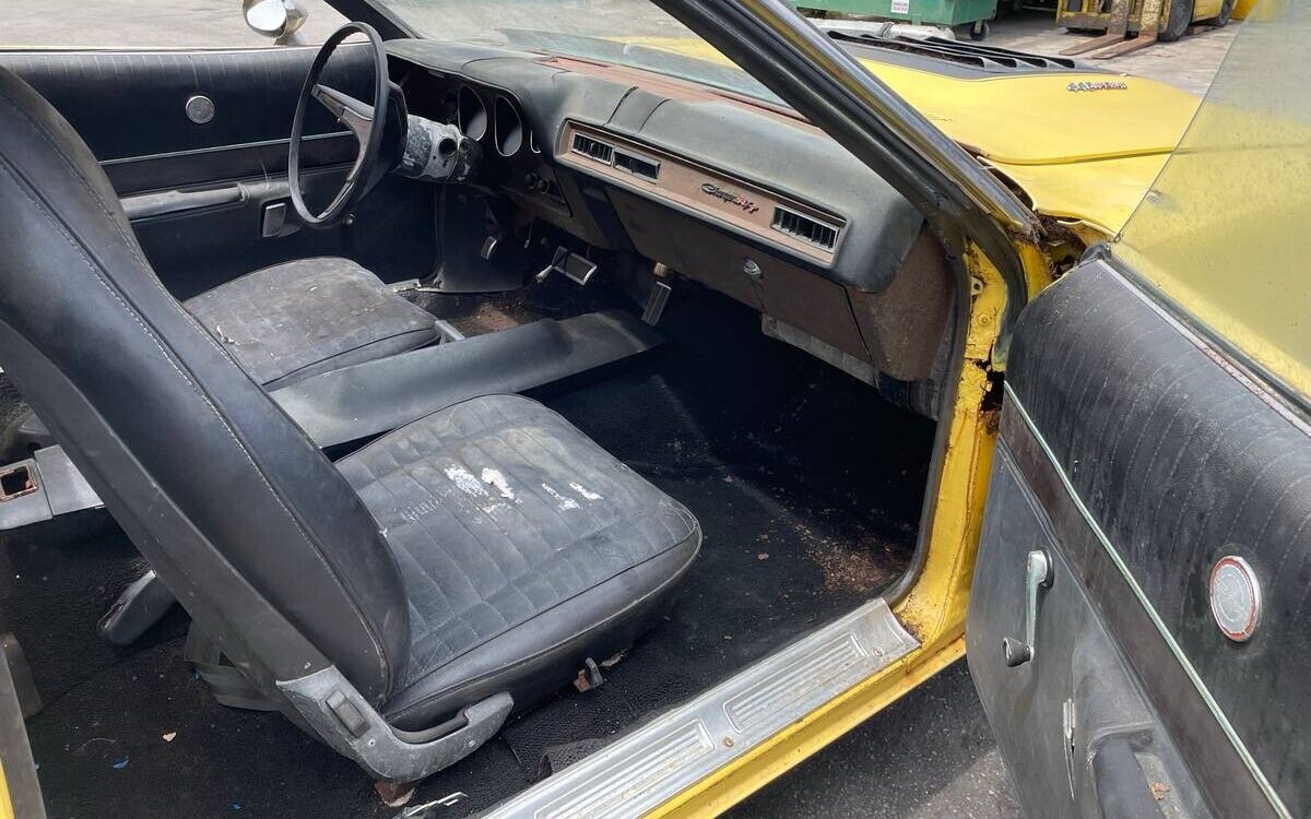 Power, when running, amounts to 370 gross HP emanating from a 440 CI V8, and in this case, channeling the “go” via a TorqueFlite automatic transmission. The engine appears to be intact and I noticed two changes, one being a swap to a Holley carburetor and the other being the badly corroded, chrome-plated valve covers. Based on the odometer, it has been at least once around.