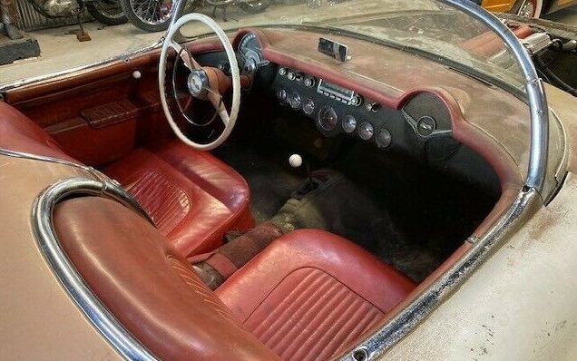 The shifter knob does look like it has a shift pattern etched upon it and agreed, can’t spy the pedals. If there is a manual gearbox in place, the “100% complete” claim is a bit misleading. Yeah, it might be complete but not the way it was in 1954.