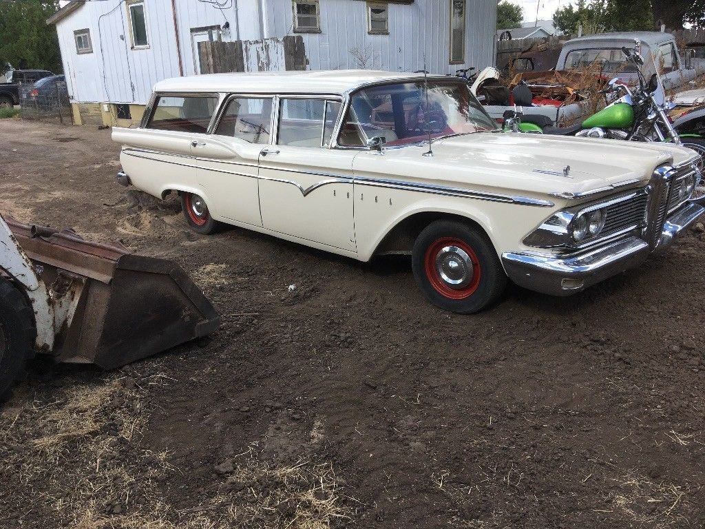 This 1959 Edsel Villager has been hiding away in a barn for the last 40 years. It has been brought out into the sunshine again, brought back to life and is now ready to move on to a new home. Located in Bucklin, Kansas, you can find it listed for sale here on eBay. The Edsel is offered with a clear title and bidding has reached $4,050 but the reserve hasn’t been met.