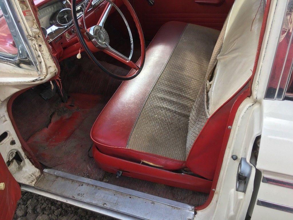 I own the same car but with a red roof and red inside the body mldgs. It is my shop truck. Bought it from an old fellow who did a amateur restoration on it with his grandson. He needed to sell it as a divorce was headed his way at 72 years of age [go figure]. Paint was new semi gloss, due to inexperience. Engine was brand new 223 six with a 3 speed manual. I thought I would go through the car, new v-8 engine, paint etc. The six was new but ran like crap. I adjusted the valves on the six and then it ran great. Added a Clifford intake, header and a Holley 4 bbl. Put a t-5 behind the six and kept the exterior and interior the same. Put on some smoothies with trim rings and wide white radials. The wagon is an absolute blast. Grind out the rust bubbles once a year blow in some white being careful not to make it too glossy and enjoy the ride.