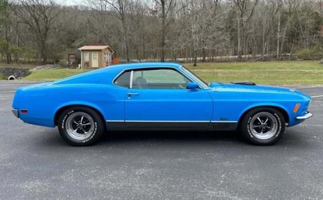 Ford introduced the Mach 1 to its Mustang range for the 1969 model year and immediately found itself with a hit on its hands. The first-year sales tally of 72,458 vehicles was impressive, and with only 5,396 buyers opting for the GT, it is unsurprising that the badge that once defined Ford’s high-performance pony car offering disappeared before the year’s end. The first owner ordered this Mach 1 in 1970, choosing to cloak its exterior in highly desirable Grabber Blue. The seller indicates that the car has undergone a full restoration, although it is unclear when the work was completed. However, the underside shots might provide a clue, because the floors and mechanical components are in as-new condition. That suggests that this Mustang hasn’t clocked many miles since the tools were safely stowed away in the cupboard. It also confirms that there is no evidence of corrosion, let alone penetrating rust. The exterior is stunning, with the paint shining like a mirror, and the panels appearing laser-straight. I can’t spot a single flaw with the trim or chrome, and the Magnum 500 wheels look perfect. These characteristics are all wonderful, but it is the badge on the side of the Shaker poking through the hood which indicates that this Mach 1 is something special.