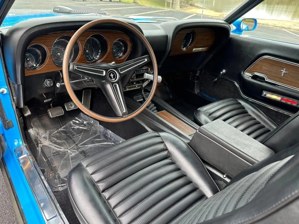 Ford introduced the Mach 1 to its Mustang range for the 1969 model year and immediately found itself with a hit on its hands. The first-year sales tally of 72,458 vehicles was impressive, and with only 5,396 buyers opting for the GT, it is unsurprising that the badge that once defined Ford’s high-performance pony car offering disappeared before the year’s end. The first owner ordered this Mach 1 in 1970, choosing to cloak its exterior in highly desirable Grabber Blue. The seller indicates that the car has undergone a full restoration, although it is unclear when the work was completed. However, the underside shots might provide a clue, because the floors and mechanical components are in as-new condition. That suggests that this Mustang hasn’t clocked many miles since the tools were safely stowed away in the cupboard. It also confirms that there is no evidence of corrosion, let alone penetrating rust. The exterior is stunning, with the paint shining like a mirror, and the panels appearing laser-straight. I can’t spot a single flaw with the trim or chrome, and the Magnum 500 wheels look perfect. These characteristics are all wonderful, but it is the badge on the side of the Shaker poking through the hood which indicates that this Mach 1 is something special.