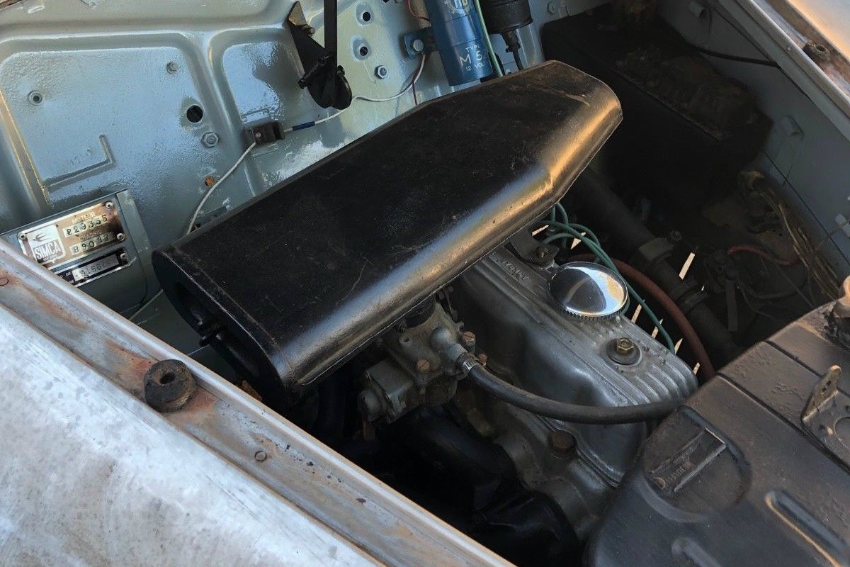This one would be interesting to find parts for. The engine is basically a Fiat 1100 millecento punched out to 1221cc. It is still not very fast. Abarth did do some wizardry on Simca cars and engines, but this isn’t one of them. My guess is a lot of the drivetrain is also millecento and probably a lot of the trim and switch gear.