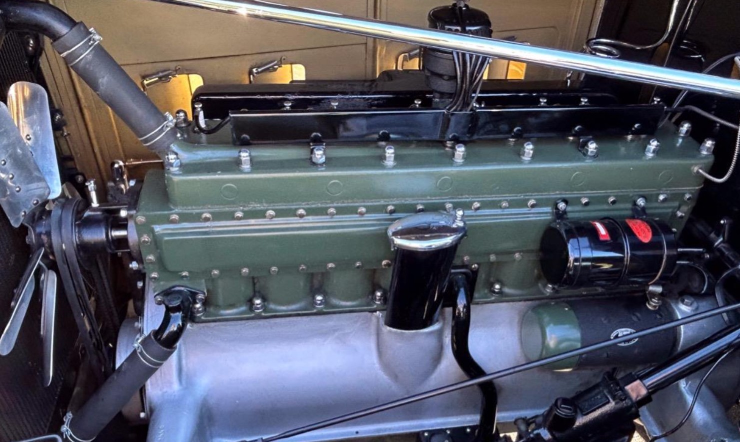 This example received an exacting restoration about twenty years ago and it has been shown extensively since then, accumulating an impressive list of awards. Since that restoration, the car’s original 384 cu. in. in-line eight-cylinder was rebuilt by a specialist with no expense spared. Horsepower comes in at 135, respectable for the day. The transmission is a three-speed synchromesh manual. The wheelbase of the 903 is 142.5″; the longer 904 measures 147.5″. As we would expect from a car of this caliber, the underside is impeccable. The seller has used the car fairly regularly in his 17-year ownership, putting 5000 miles on the clock.