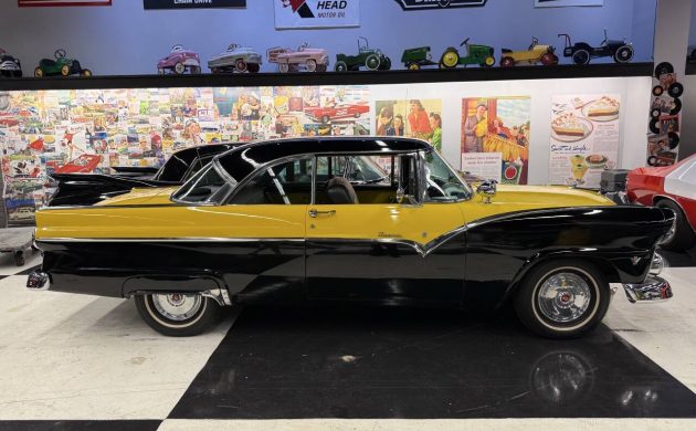 ’55 and ’56 Fords especially the Fairlane range were very nicely styled. My father had a ’55 Crown Vic. So many manufacturers, Ford included had an amazing selection of colors to choose from, especially with their two tones. Black and yellow is not that common, usually Red and white turquoise and white pink and white pink and black, green and white. The 3 speed stick with an overdrive was an interesting choice, and I’mwith Adam thinking this is probably a 272 like my Dads had. Unfortunately the seller doesn’t quite seem to know what they have here. I’m glad you picked this Fairlane to write up Adam, I enjoyed it, and the memories, and a big thanks to Curvette for all the great finds you submit.