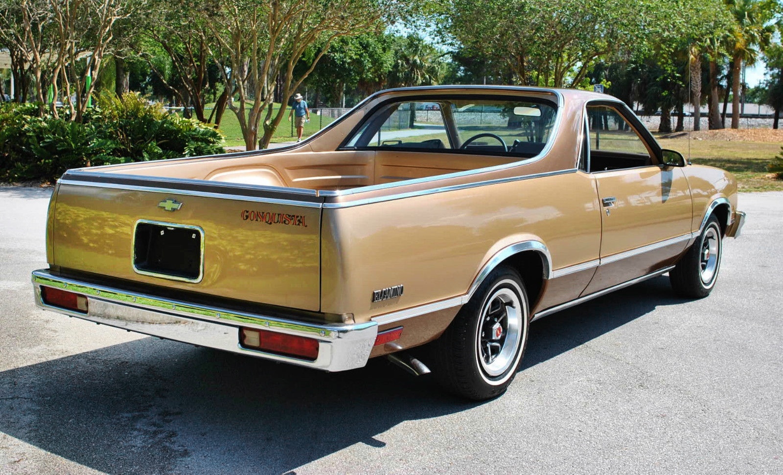 The Conquista Edition was a trim package that included “an available special paint treatment molding package and special accent color.” That’s one of the most obscure trim package descriptions that I’ve ever heard! Chevy also offered a Black Knight and a Royal Knight SS edition. The interior appears to be “like new”, as they say in the car-selling business. And, power windows?! A very nice touch. Those seats look quite cushy, much more so than I would have imagined being in an El Camino, an vehicle that a person could theoretically haul things in the back of. But, I guess that’s like thinking that the average SUV owner would actually take them off-road.