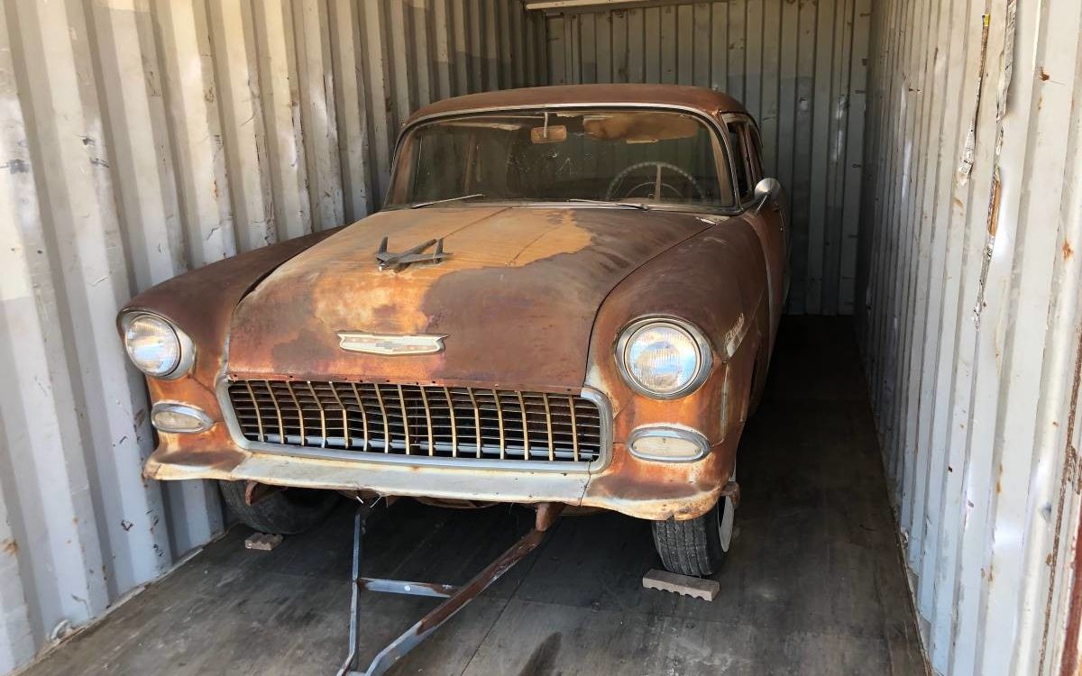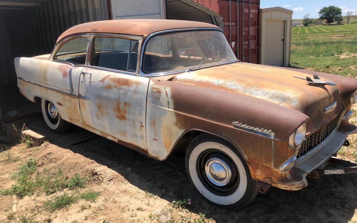 Near Pueblo, Colorado, you’ll find a field dotted with several shipping containers. Inside one of them housed this awesome 1955 Chevrolet, which is now for sale. It can be found here on Craigslist with a firm asking price of $9,000. There isn’t a ton of information in the ad regarding the history of the car. Also, there aren’t any photos of the engine compartment or interior, but there are some well-detailed photos of the body. Have a look at this project and see if this awesome tri-five is for you and thanks to Ikey H. for the tip on this one!