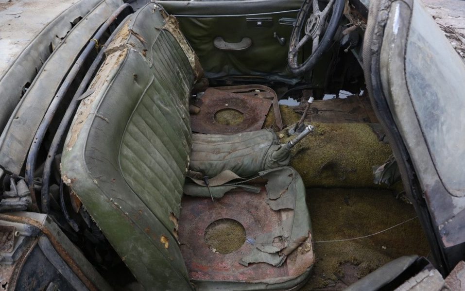 Doesn’t look staged to me either. And if the car had been outside exposed to the elements for decades, as the commenter alleged, there would be nothing at all left of the leather on the seat backs, or the door cards. It has clearly been under a roof.