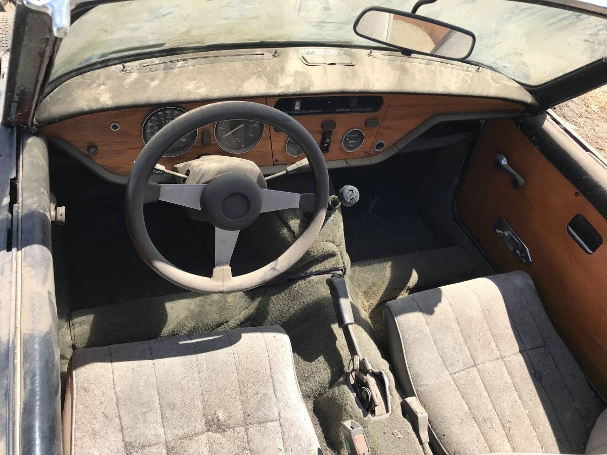Despite the rest of the world seeing improved performance in what would become the fifth generation of the model, U.S. Spitfires were smacked with lower compression motors and catalytic converters. The resulting power deficit made the run to 60 a lethargic 16 seconds, while the overseas markets saw marked improvements over previous iterations. Fortunately for this Spitfire, its classic interior adorned with woodgrain trim has remained in very good condition, as have the carpets and door panels.
