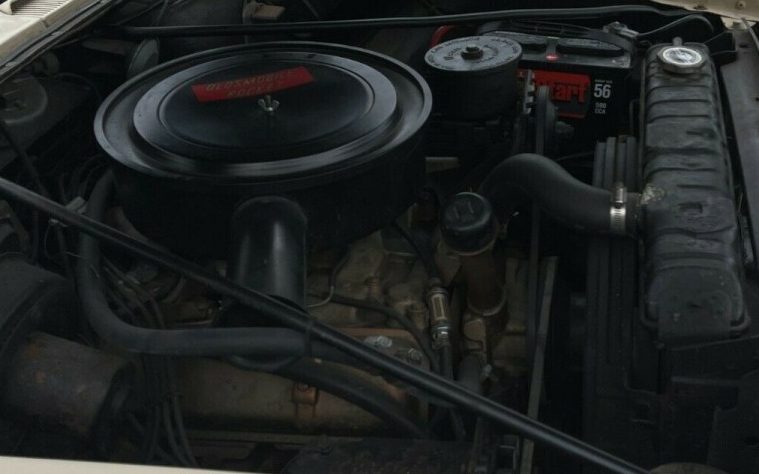 Power is provided by a 370 CI V8 engine of either 265 or 305 (Super Rocket) gross HP, the seller doesn’t disclose which, working through a Hydramatic automatic transmission, known in Oldsmobile parlance as a “Jetaway”. The seller claims, “Big block rocket motor and automatic transmission in flawless running condition, brakes and tires in excellent condition, exhaust in great condition…” The only noted issue is the possibility of a front seal leak as the bottom of a front cross member and the lower suspension arms are oil covered.