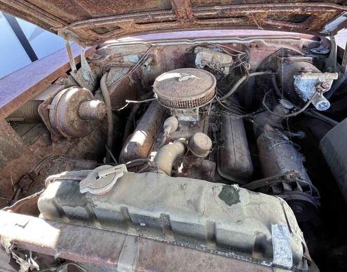 With any luck, rust may be at a minimum given the dry climate in California/Nevada. The paint is faded with lots of patina, but pop open the trunk and you’ll see how shiny the Sierra Gold paint once was. The interior looks to be blue, which would be an odd combination with the exterior and it’s likely the material would start to fall apart during a thorough cleaning. When this automobile was new, it must have been quite the sight running down the highway, with or without rear fender skirts!