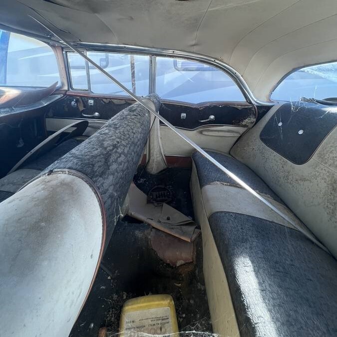 Always thought these were much cooler than the two doors. I recall ions ago in the early 80s as I picked things for my 64 and 59 Chevies. The one yard I frequently strolled had a black with the red/black and silver inside. The only thing left of the continental kit was the bumper piece. The car was loaded, in fact I have never seen another 57 equipped since. The car had a 283 4bbl with factory ac, ps, pb, autronic eye, power windows, seat, tissue box, and some weird ashtray thing. Like most 50s cars were I was any rust that started was finished. This car will be a solid, great piece to bring back. I hope it gets a second chance and not some high roller parts dealer.