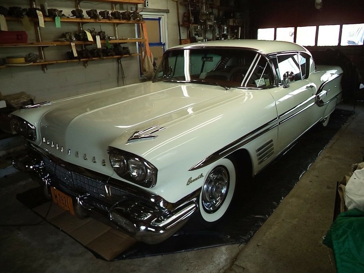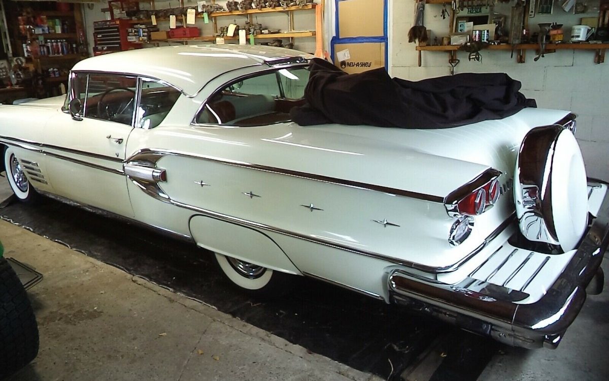 I had a ’58 white Chieftain convertible. with light blue trim, white top and white boot. It didn’t have the continental kit or fender skirts. We drove it back and forth, from Philly to L.A., three times, in ’61 and ’62. First time out, on Rte 66.