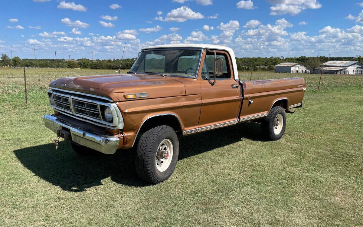 Here on eBay is a good ole farm truck, a 1972 Ford F250, bid to $3,610, reserve not met. This truck is located in Crescent, Oklahoma. The seller has owned this truck for ten years, and he bought it from a nursery owner who also used it for years. At some point, before either of these owners enjoyed the truck, it was converted from two-wheel drive to four-wheel drive. The job was not done to a professional standard but the seller says it does work. The frame is the original 2WD version. Useful accessories include a Ramsey winch behind the front bumper and a gooseneck hitch.