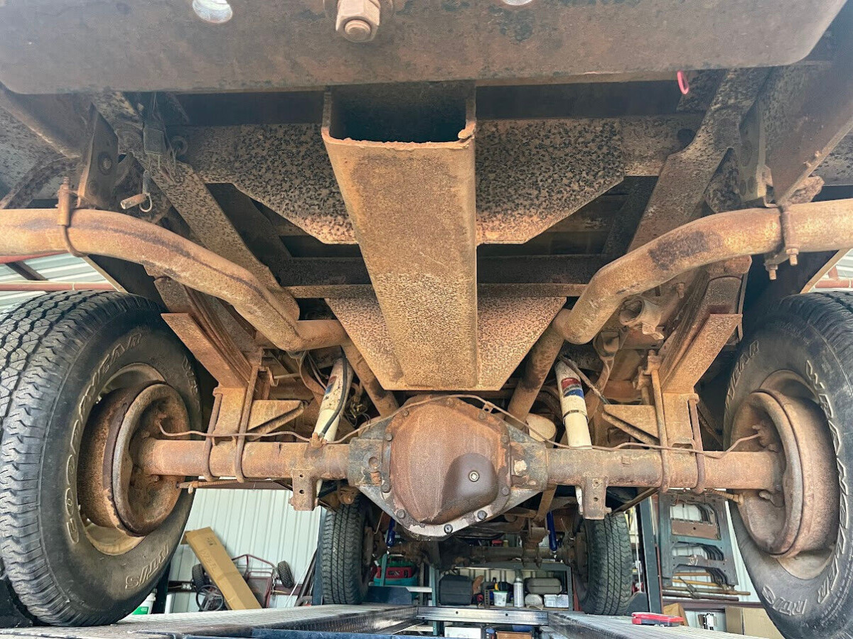 Heavy surface rust coats the underside. Unfortunately, that’s not where the rust stops. The bed is rusty in one corner, and the seller already patched the passenger-side floor and the front and rear cab supports. The truck has been repaired for usefulness, not to win ribbons. The seller shot the entire body with a semi-gloss clear coat – a subtle look that will at least forestall one or two rust molecules for a couple of weeks. There’s no indication of how much the seller wants for this truck, but if it runs well it’s certainly worth more than the current bid. If this showed up in your driveway, what would you do to it first?