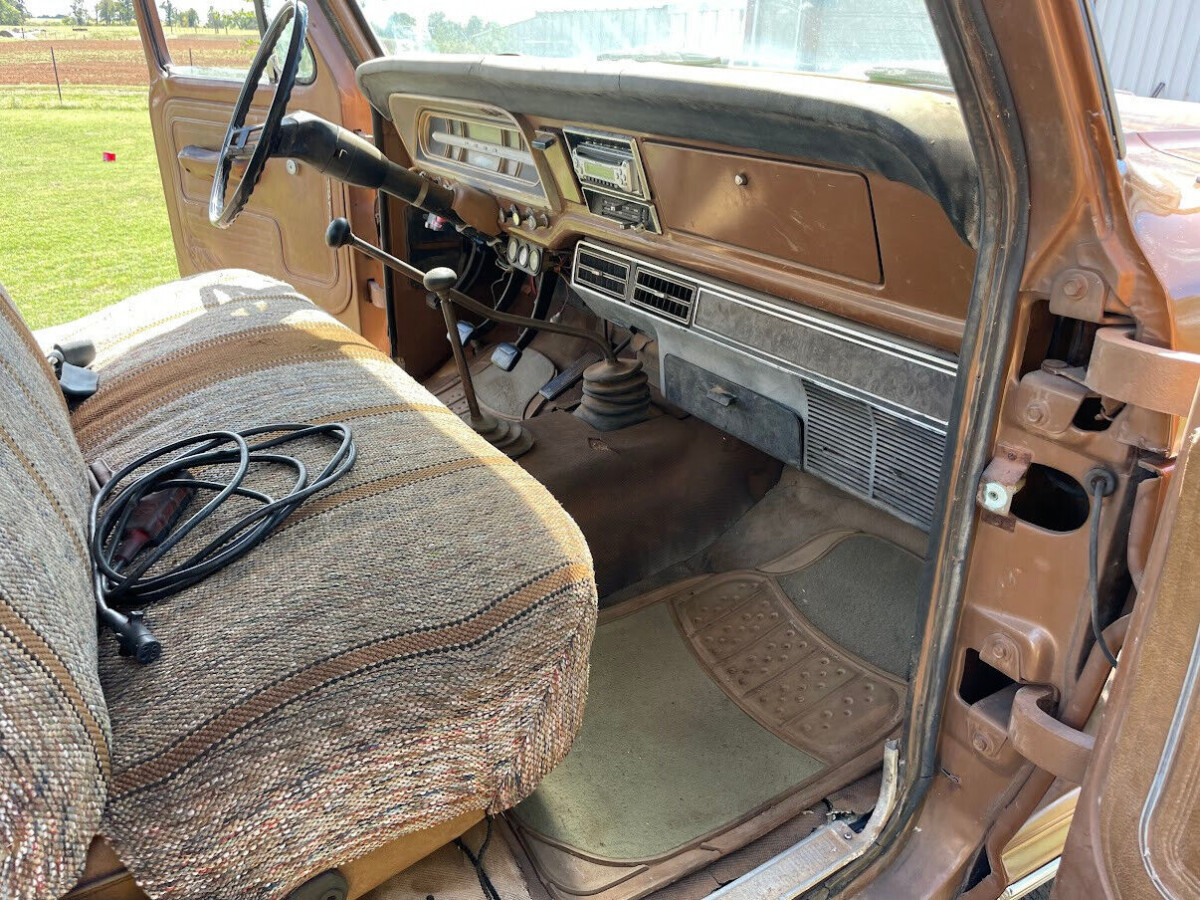 The engine is the venerable 390 cu. in. V8, augmented by an Edelbrock intake, an Edelbrock four-barrel carburetor, a COMP 268 cam, and Hooker headers! The seller says the truck runs well. The 390 in stock form would have put out about 200 bhp in 1972 but it was a torque-beast so hauling was a breeze. These motors run forever, drink gas like it’s going out of style (well, maybe it is), and can be juiced up with nearly endless supplies of performance parts. The transmission is a four-speed manual.