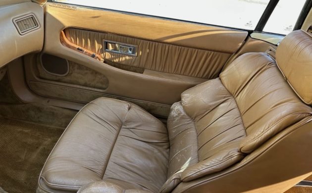 Inside, Chrysler tried for the luxe look, with ritzy leather upholstery, pleats everywhere, real wood accents, and plush carpet. But the gauge panel is a disappointment, plain and ill-made. The hardtop is electrically released via a rocker switch, and a manual ragtop hides beneath. On sunny days, that innocent opera window intended to swank up the roof was known to burn the rear storage compartment carpet by concentrating the sun’s rays as it passed overhead. This interior is on the rough side: I’ve seen better furniture on New York City street corners for free.