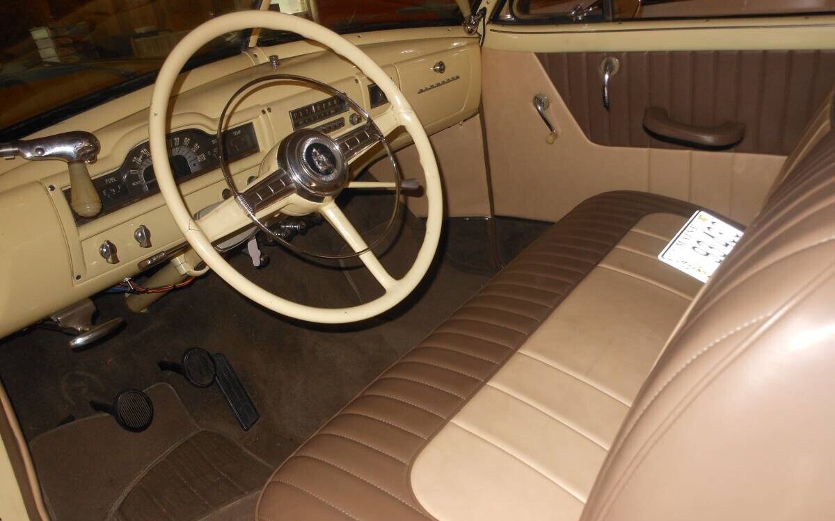 The interior is just too exquisite – I’m calling it, this car has been restored and done to a very high level. The two-tone vinyl upholstery, the painted dash and trim pieces, the carpet, and the door panels – all are in excellent shape and don’t look seven months old much less 71 years of age.