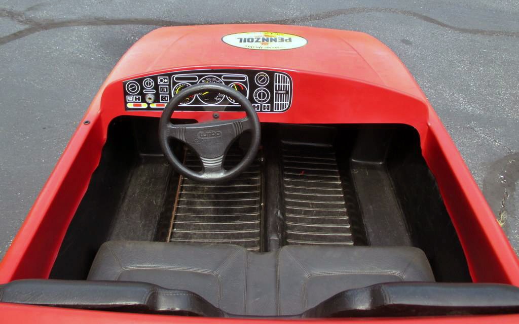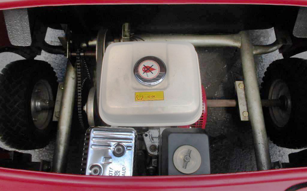 Here’s where the relative power is, under that cool, louvered lid. The Turbo 006 came with a 3.5-hp Honda engine which took this baby up to just over 20 mph. I have an 11-hp Honda engine in the garage that would be quite an upgrade, hmm.. If this cool cart were half this price it would be hard to not pounce on it, but I think that about most vehicles. Have any of you seen a Saab go-cart?