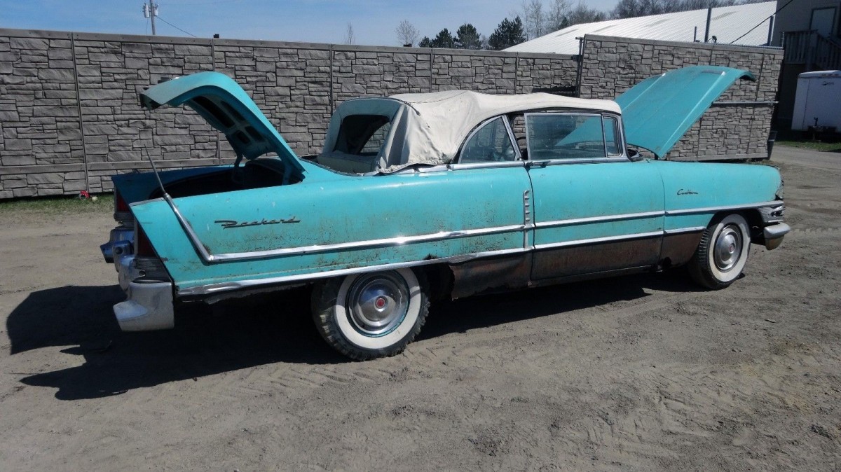 Buy both cars, then sell the Clipper, put the cash into buying the Caribbean parts needed. BUT BE FOREWARNED; The Caribbean windshield is a compound curved piece of AS-1 laminated safety glass that is about 2″ shorter than the closed Packard & Clipper cars. Replacement 1955/56 Caribbean Convertible windshields have been unavailable since the early 1960s.
