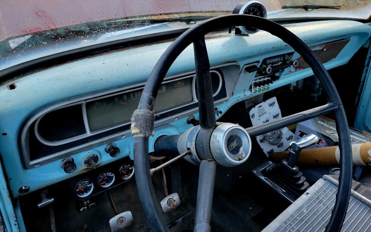 Inside, there have been some aftermarket goodies added such as a trio of gauges, a tach on top of the dash, and of course that custom shifter. One thing I did notice that’s a bit concerning is the steering wheel, which is showing some cracking near the column and in other areas, and I’d hate to be pushing that small block and have it break in my hands. I’d consider changing it out fairly soon with either a better original part or an aftermarket item, probably an hour’s job at most. If you’re intrigued there’s also an option to buy it now for $15,000, but with no bids so far, no reserve, not much time left, and the opening price at only a little over half the own it today amount, I might just bid near the last minute and take my chances. What are your thoughts on this F100?