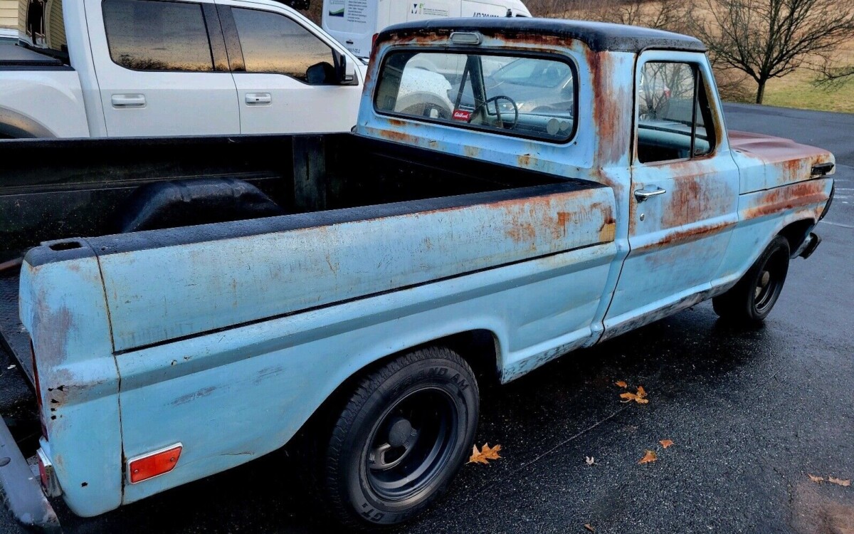 The seller says he’s owned the F100 for about 4 years, and interestingly doesn’t mention a single thing regarding the body, as he’s focused his attention elsewhere. We’ll get to that in a minute. So we don’t know if this is the same paint, or what’s left of it, that the truck left the factory with more than 5 decades ago or if it’s ever had a respray. If it has, that was a long time ago, as it takes years to develop this kind of patina. While it ain’t exactly beautiful, at least there’s not anything questionable being covered by a fresh coat of pigment, and overall the body integrity appears to be pretty good. One thing the seller does point out is that the frame is structurally sound, although we don’t get to see any pictures of it.