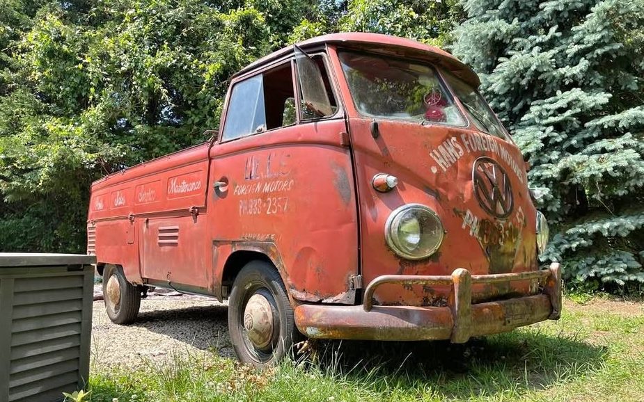 The Transporter is still in production today, more than 75 years after its debut. It’s much more functional now with plenty of creature comforts. But in the 1950s, this means of transportation was pretty basic. As the story goes, this pickup was in the service of Hans Foreign Motor Co. out of Kankakee, Illinois. You can still read the company’s name in the faded paint on this rusty project and appears to be nearly in running condition. Years after it was no longer employed, the shop cut it up for scrap metal and it laid around until the seller put Humpty Dumpty together again.
