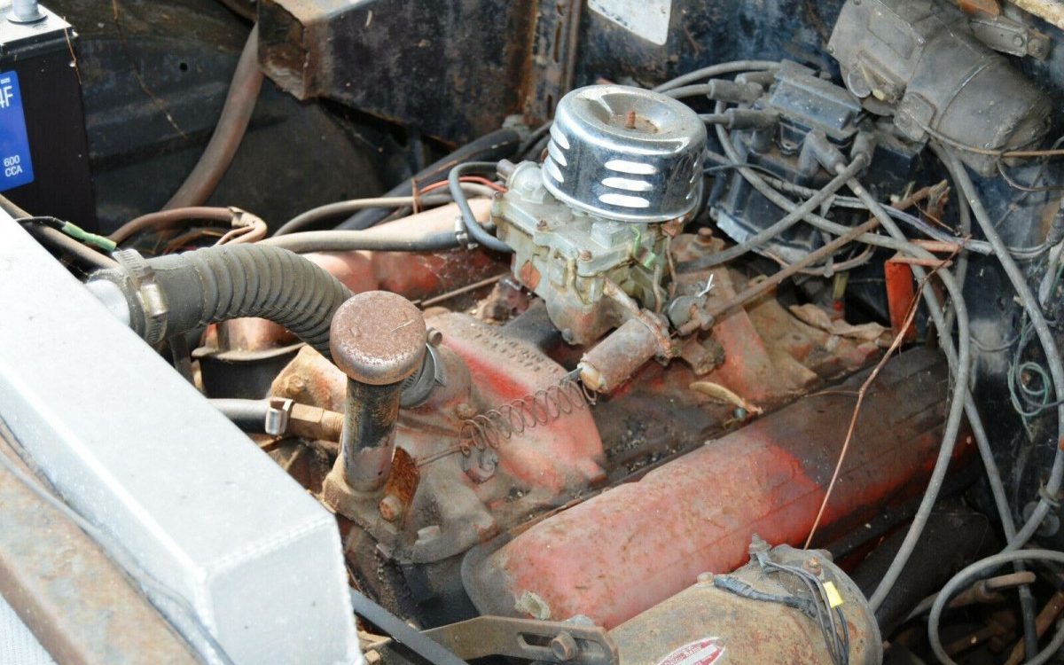 Despite the addition of a later GM HEI electronic ignition distributor and a ludicrous air filter made from a Vienna Sausage can, this engine is claimed to be the original V8 and three-speed manual transmission. The column-mounted gear selector gave way at some point to a sportier floor shifter. I learned to drive on my parents’ Plymouth wagon with a V8 and a floor-mounted three-speed manual, and I’d love to take this one for a whirl. That’s right; this car runs!