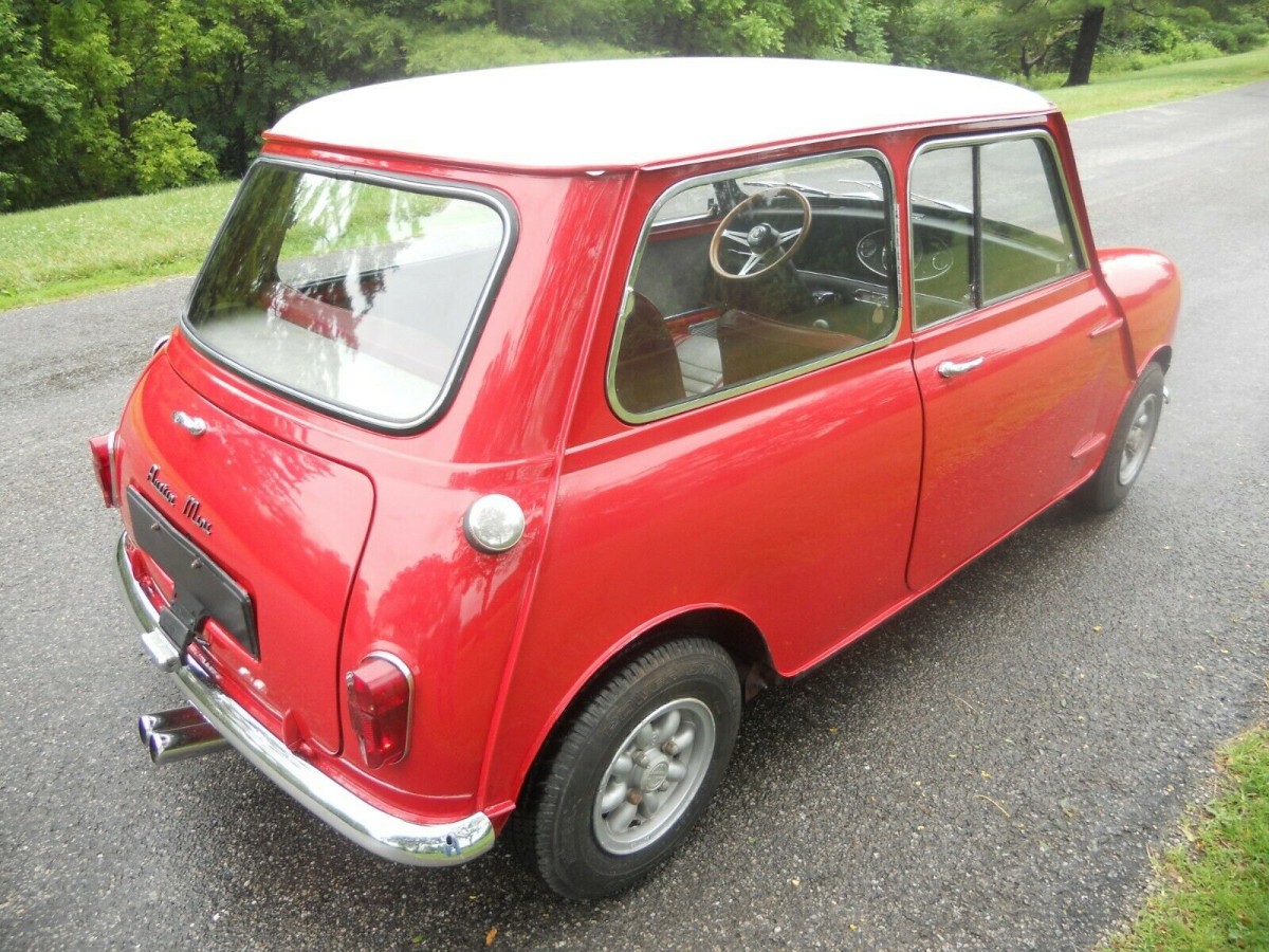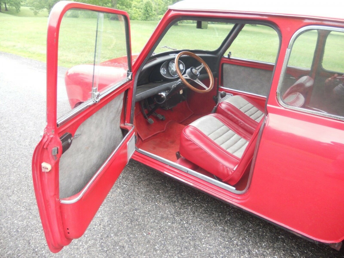 The Mini is finished in Signal Red with a White roof. It has been owned by the same family since new and is now being sold to settle an estate. The paint looks extremely shiny, and this is for a good reason. The vehicle received a repaint in its original color only a few months ago, and this was applied over a clean and straight body. One of the greatest enemies of early Minis was rust, but this car doesn’t have any problems in that regard. The trim and chrome appear to be in good condition, but I would make one small addition that I believe would finish the exterior nicely. There are chrome trims available to cover the exposed lips on the wheel arches, and I would be inclined to source and fit a set of these. Beyond that, the exterior needs nothing. The vehicle scores a set of Minilite wheels (naturally), which suit the character of the car very well.