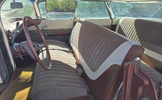 The side trim is correct for the 1960. I’m not sure if the upholstery is original or not. I had a 60 Impala ragtop, so of course the seats were vinyl, but they had more of a sort of plaid design. I guess Chevy could have offered more than one upholstery style, but I don’t know. I also question if the driver’s side of the seat could be that free of wear and tear after more than 100,000 miles. Anyway, I’ve always loved the style of the 60, and this is a VERY heavily optioned Impala for the time. Hope it goes to one who will appreciate it.