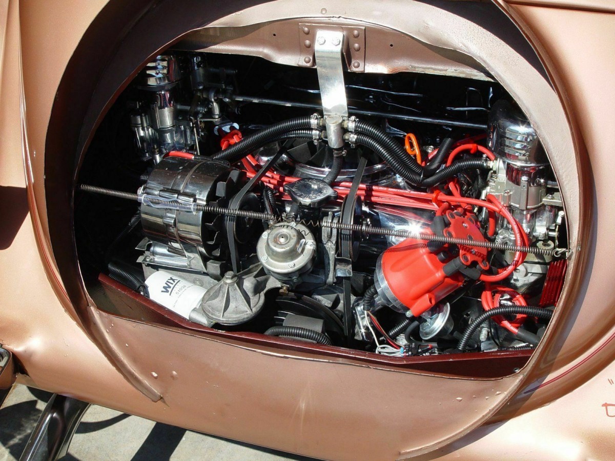 I cant believe that someone with this nice a build would put a Corvair engine into it. My neighbor bought a new Corvair when I was a kid and that thing was a problem and they worked on it all the time, trying to get faster and more productive RPS. This was true Chevy guy that has drag race Chevy’s. It would really chap him when my Dad’s slant six dodge pickup would beat him in a quarter, of course the slant six had a little work performed on it.