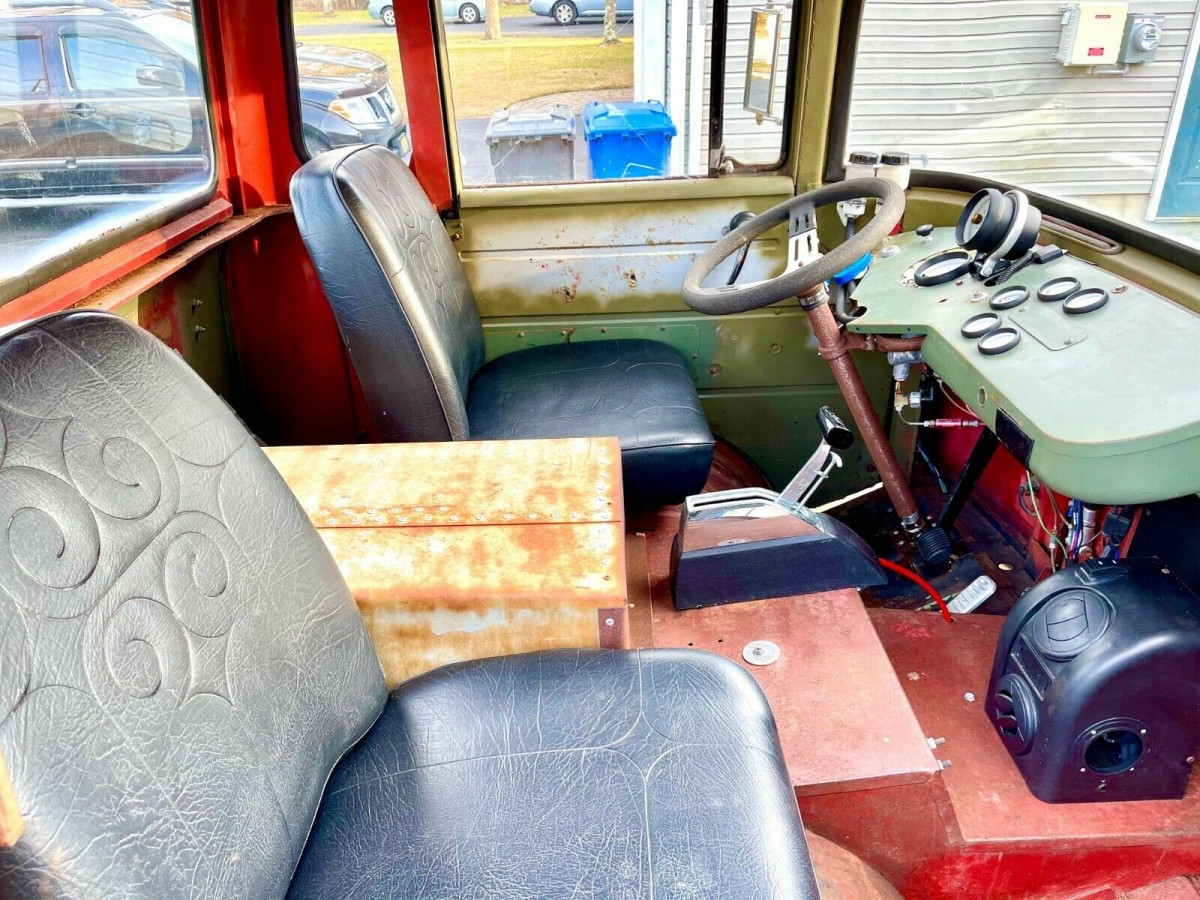 These also came in a super rare 4 door model, with a shorter bed of course. Driving a COE takes some getting used to, as you are sitting right over the front Tire’s, I had an older mid engine econoline van with leaf springs front and rear with the anemic 170 straight 6 motor, and it always smelled of gasoline inside the cab. Also note that these older FC {forward control} were rust buckets at the rockers and the bottom of the doors, this is one of the better looking body’s I’ve seen, I say the next owner box the frame, drop a Dana 60 under the front leaf springs, and an Atlas 2 transfer case behind the transmission, it’s what I would do, what about you?