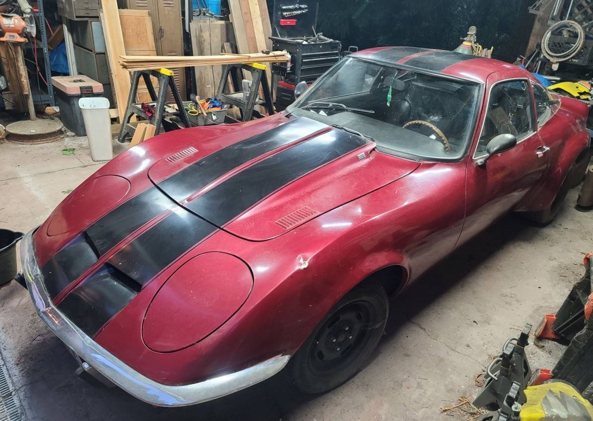 The red paint and decals on this GT are getting tired and there are a few dings and dents. So once the buyer gets it running, a trip to the body and paint shop may be in order. To help with the rest of the restoration process of this 85k-mile car, the seller is sending along almost an entire GT’s worth of extra stuff, including a motor, two transmissions, spare gas tank, and a new leather interior set. The Opel GT appears to be a $20-25,000 car in top shape according to the online price guides, so if you’ve been wanting one, this might be a good starting point.