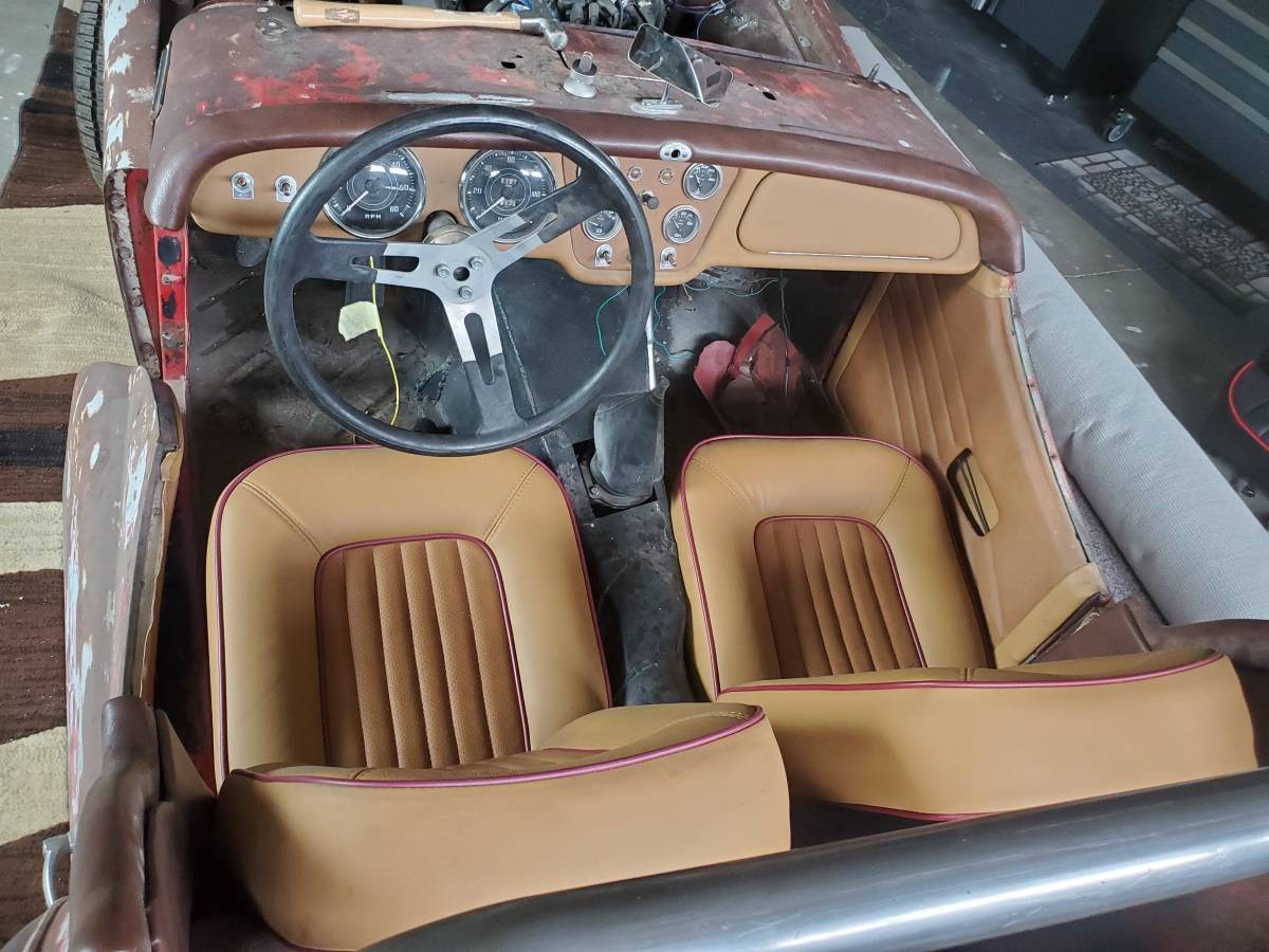 Where the two-liter four-cylinder Triumph mill used to reside is a blueprinted 327 Chevy small block built to 1967 Corvette specs. The block was bored .040 over and is fitted with forged pistons and a new solid-lifter cam. This engine is topped by a pair of “double-hump” cylinder heads fitted with stainless steel valves. This build is said to be good for 365 horsepower which is delivered through a new flywheel and clutch to an unspecified five-speed transmission and a driveshaft with new U-joints. Cooling is provided by a new radiator and fan from a Chevrolet SSR. The suspension has been refreshed and the brakes have been gone through with new rotors and calipers up front and drums and wheel cylinders in the rear. Hopefully this be enough to stop a car that now makes nearly four times as much power as it did in stock form.