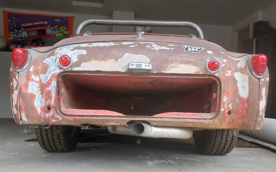 Suddenly it all came together in Billy’s mind: “route the exhaust pipe up & over behind the seats for a combination roll bar / neck heater for cool weather, top down driving”!