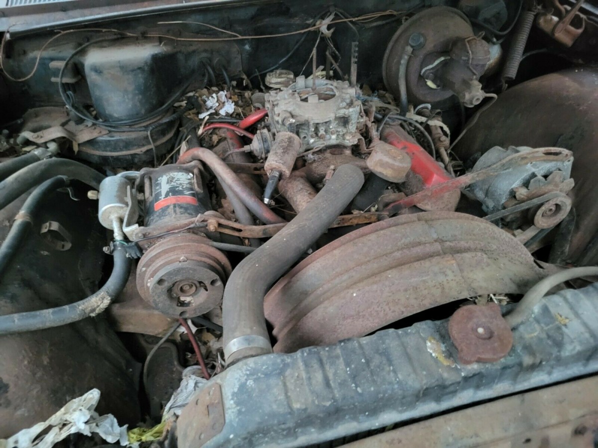 I wish I knew why, when cars are left to deteriorate as this one has, the air cleaner is always removed. I seldom see one on the cars featured here that are badly rusted/ignored/ left outside to rot. Seems if the air cleaner was left on, less chance for rain, dirt, rodents getting into the engine.