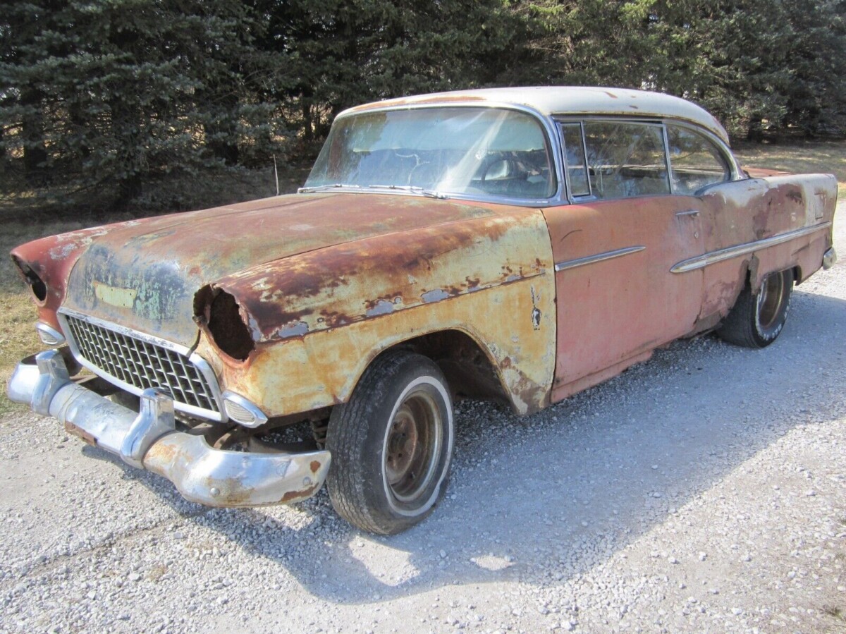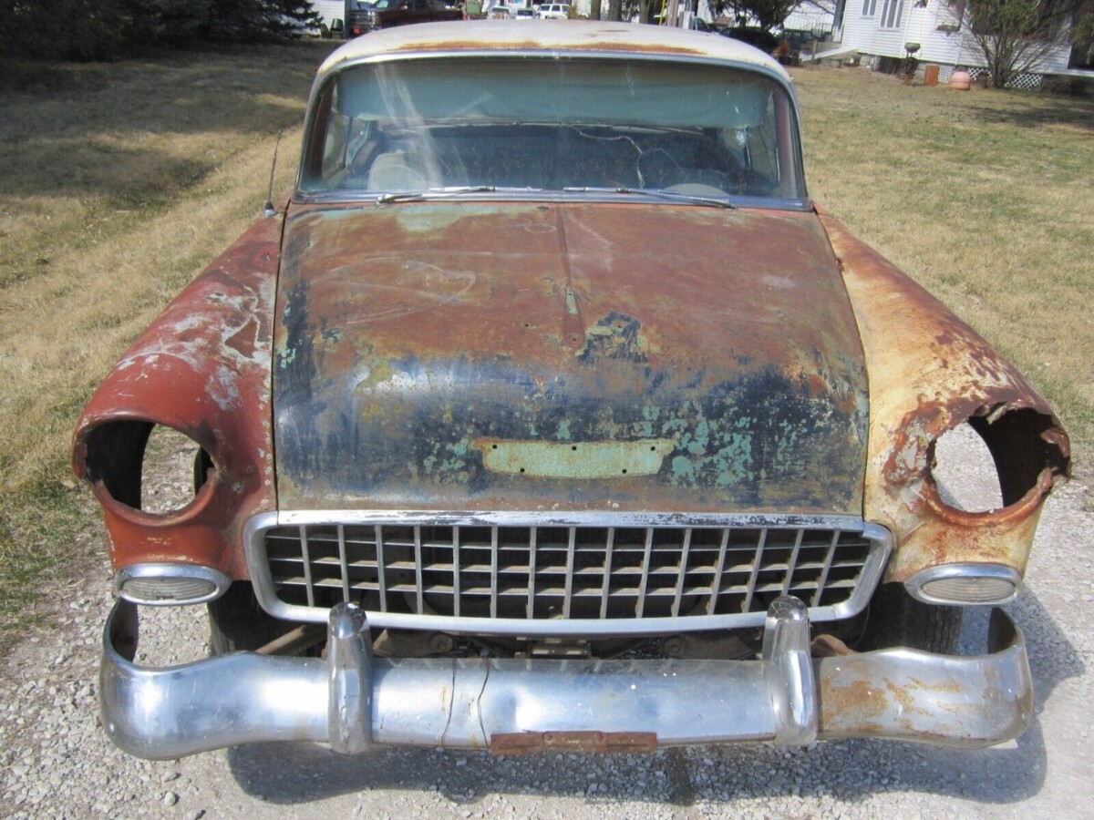 Sorry to say, but this one is a real rust bucket. I had 4 55 Chevy’s. two were convertibles, and two were 4dr. sedans. Put a new clutch in one sold the other for parts and took the interior of one Convertible and installed it in the other Put 283 power pack heads and intake manifold and ignition of a 327in to it .