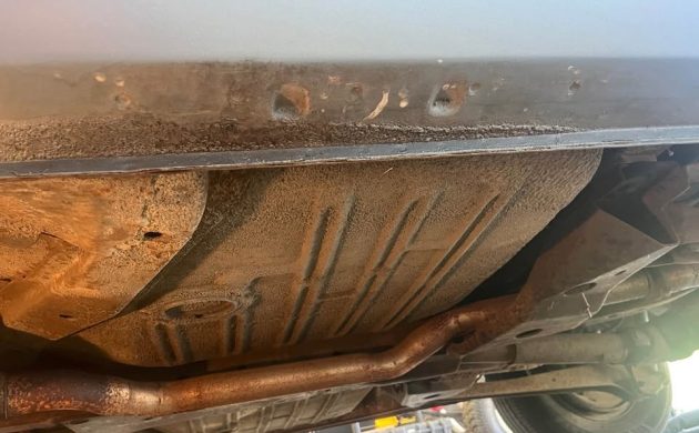 Because of its days in the comparatively salt-free home of country and western music, this Michigan car looks nothing like a Michigan car underneath. The floor pans, rocker panel pinch welds, and everything else appear to be unrestored but completely solid. Even the exhaust system looks fine.