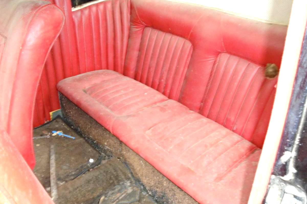 The rear seating area is equally as nice as the front, but again would benefit greatly from a good cleaning. I will say I am rather pleased with the interior as it avoided becoming a mouse motel over the long period of storage. There are no pictures of the engine, but I am assuming it to be a 49-50 Mercury Flat head V8, and it is apparently in running condition. The car is listed as running and driving, but with no brakes. Perhaps they throw a ships anchor out the window to stop this old Ford?