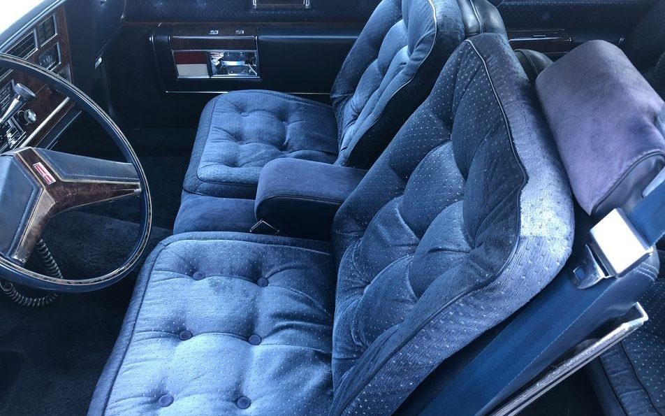 The interior is, well a matter of preference I suppose. It appears to be in fine, clean shape but those seats, really? I know, it was all the rage in this era but a pillow-top seat, which would seem more appropriate on a mattress cover, just looks out of place in a car. These spotted seat enhancements look like they were boosted from lounge chairs. The seller claims the interior, as well as the exterior, to be “immaculate” probably not the adjective that I would use but yes, from what can be seen, the interior looks new and has clearly been lightly used and well maintained.