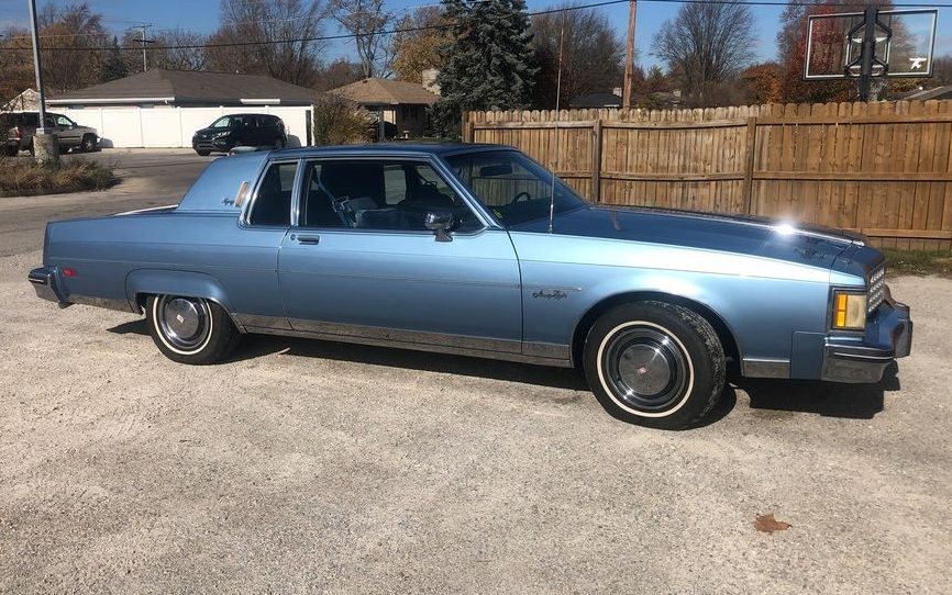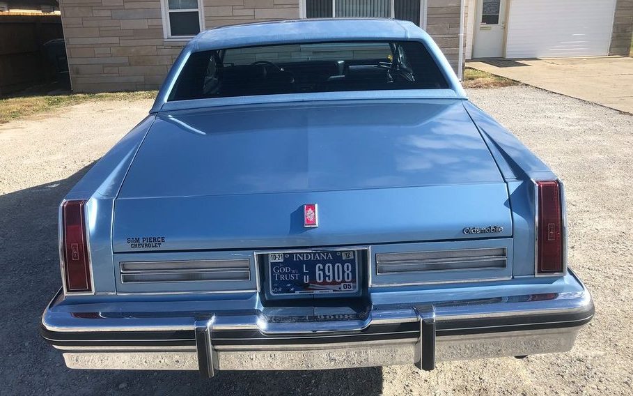 The seller claims that this 98 has been in dry storage since 2012 and it is a very clean appearing car. The finish and chrome still possess a nice shine and the Light Blue Metallic, a standard GM corporate color, presents itself quite well. One place where the 98 and 88 differ is the rear-wheel opening. The 88 has an opened radius design while the 98’s is smaller and less round, finished off with a fender-skirt. My only reason for mentioning this is that I’m just not much on skirts, but this 98 wouldn’t like quite right with them removed.