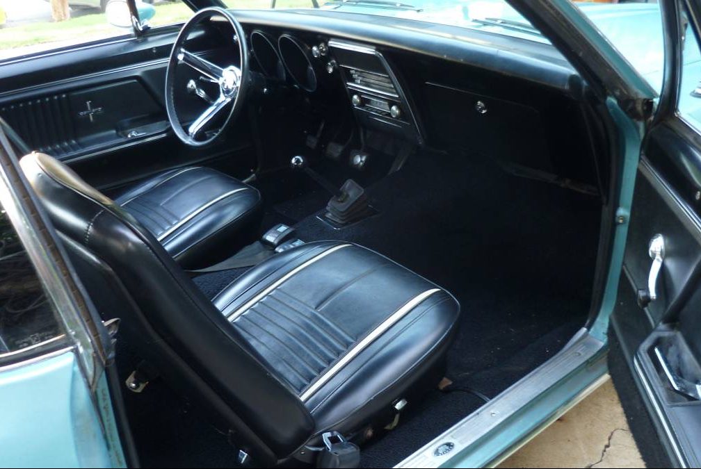 Don’t be fooled by the gas cap, this is neither an RS nor an SS, but a nicely equipped Camaro nevertheless, with a 327 V8, deluxe interior, and a sharp color combo of Emerald Turquoise with a black vinyl top. Would it be heretical to suggest that a narrow whitewall tire might set off the classy look even further? It would? Okay, then. The only detractors from the originality of this car are the aforementioned gas cap and the ’70s-style sport mirror, although it has been nicely color matched to draw less attention to itself.
