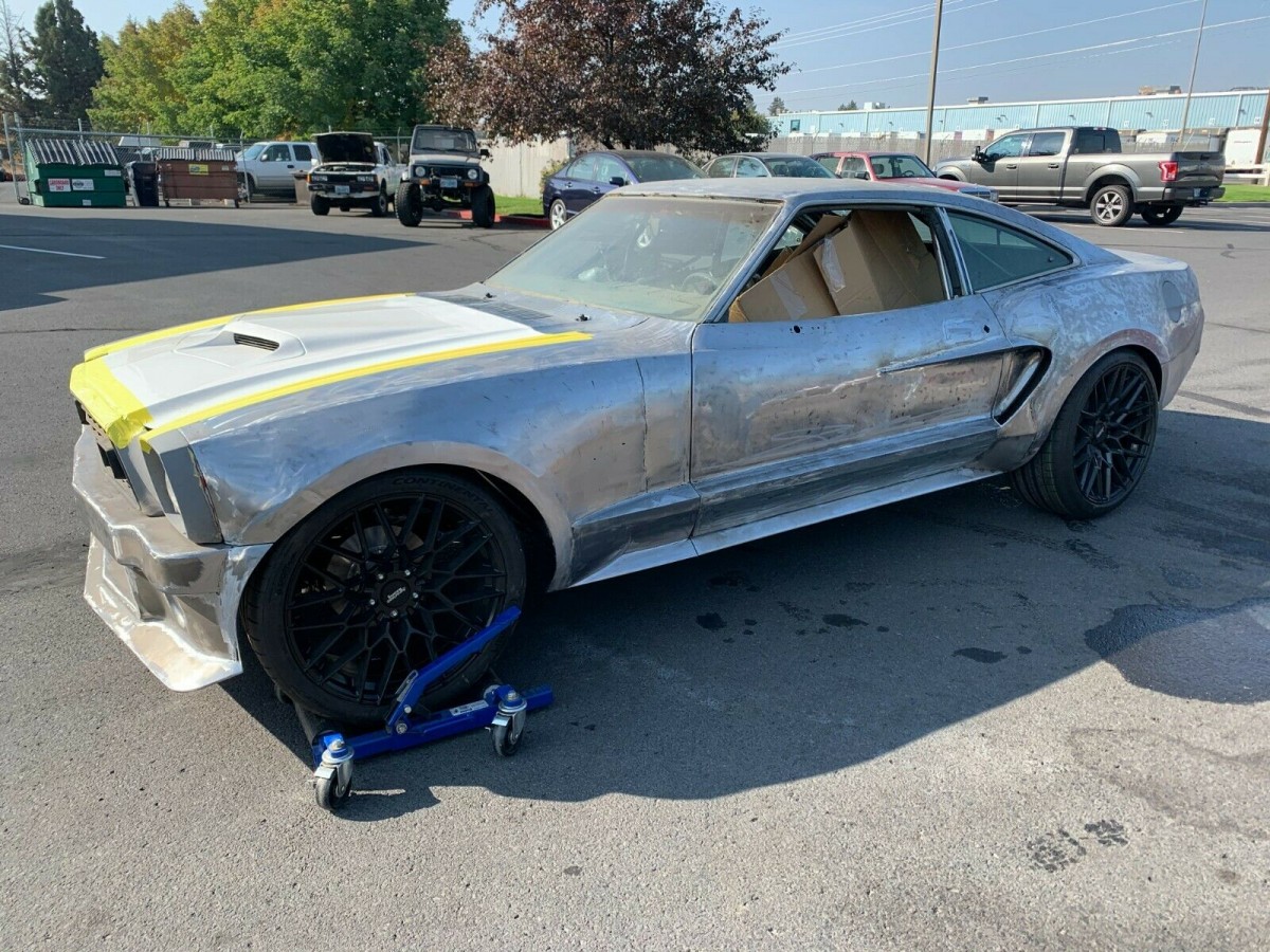 All my reservations aside, I am shocked at how clean the bodywork appears to be. I’m sure someone who spends their days fabricating and cutting apart cars could tell us more confidently whether this custom Mustang has gotten the details right, but I’m just stunned at how well the later model rear end blends into the 70s-era doors and glass cut-outs. Even the later wheels – which are significantly larger than what the original fenders were designed to handle – look right at home. The seller notes the gas tank is mounted and that some level of custom work was completed to ensure there were no clearance issues there, either, and all told, he claims to have 400 hours in labor already invested.