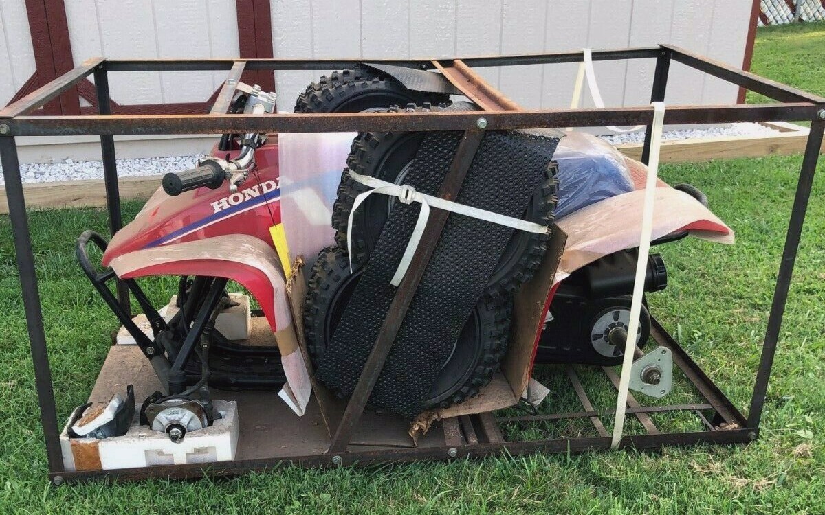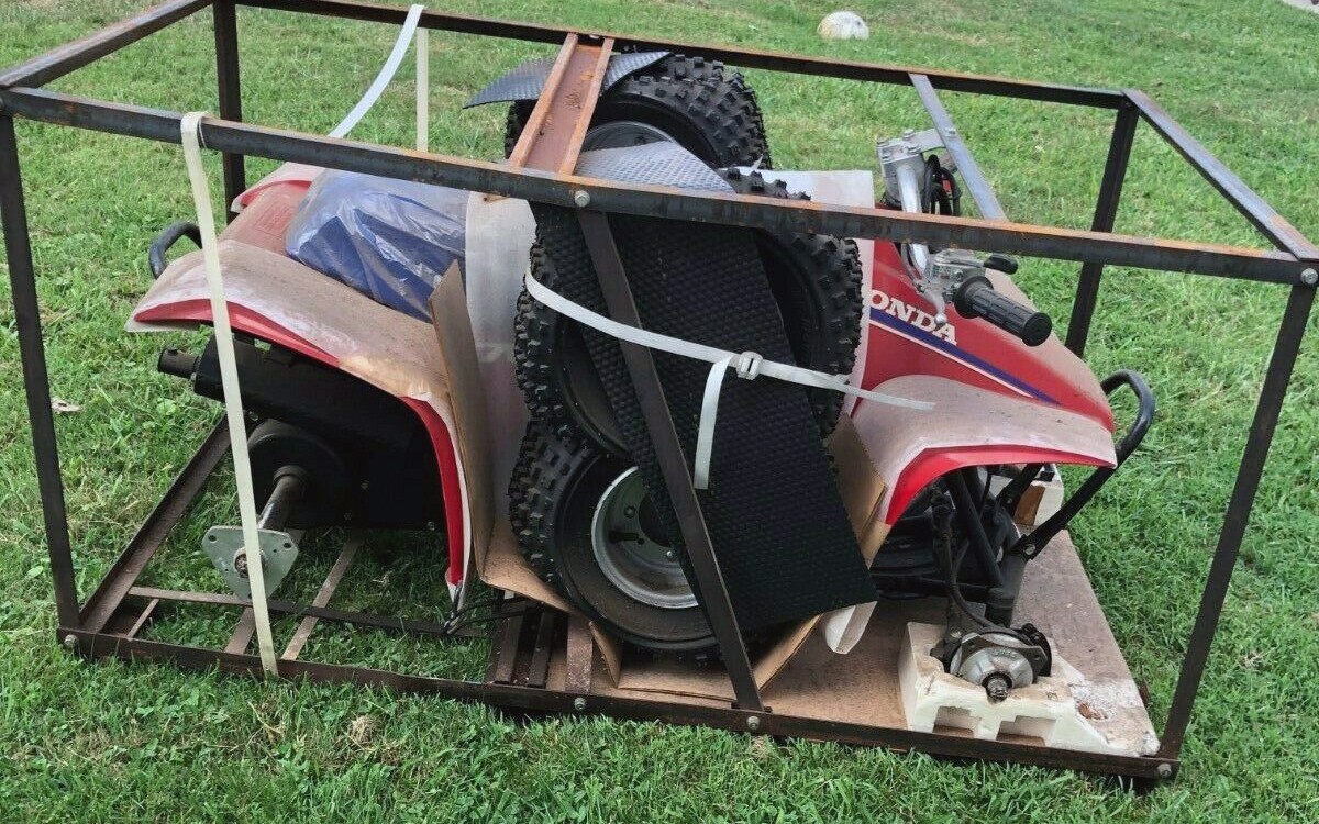 The seller says that this FourTrax has been sitting in this crate in the same dealership since it was new – that’s pretty cool. My first thought was that the owner of the dealership kept it aside since it was from the era of the first of Honda’s 4WD ATVs and they thought that it might be worth something someday. They were right. And it is. Actually, the seller says that the original owner was saving it for their grandchildren but they had no interest in it (What?!) so it continued to sit. It’s been sitting in that dealership until a month ago.