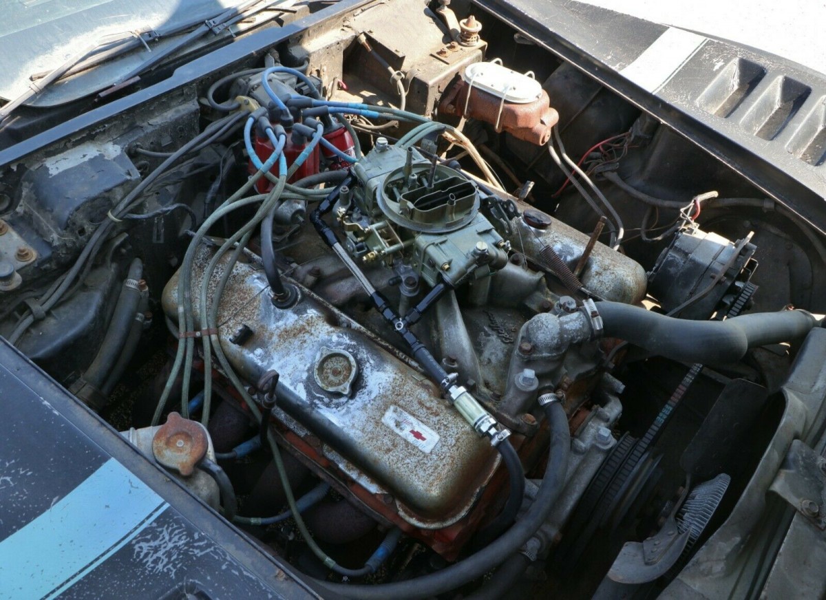 In addition to the breadvan conversion and wild period graphics, the Corvette is also sporting a 396 paired to an M21 four-speed manual. The Corvette was originally equipped with a 454, with no details offered on when or why the swap occurred. Regardless, the bodywork looks reasonably sound with flared fenders front and rear and wicked period graphics. The back window is missing, but who knows if the original van kit even came with one.