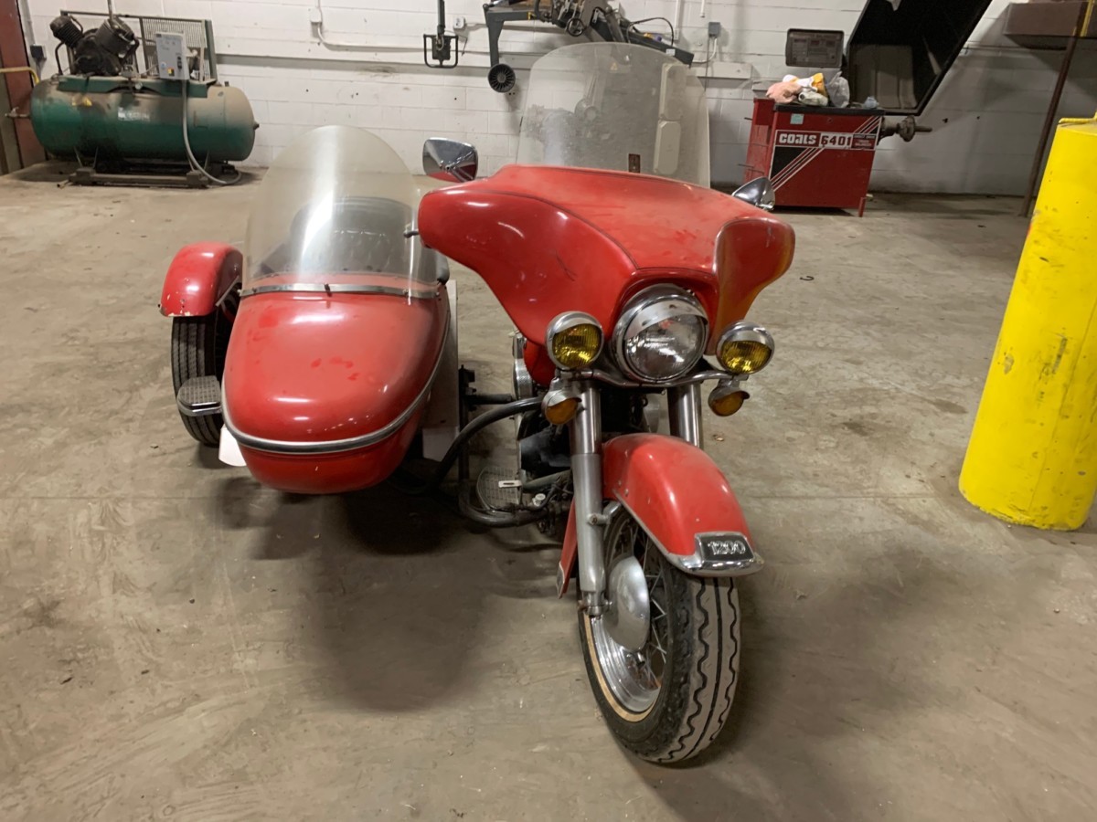This bike is missing its saddle bags. I would probably pull the batwing off the front, and remove the sidecar (I don’t like how any 3 wheeled “bike” rides, whether a trike or a sidecar bike) and ride it. Very cool old bike!