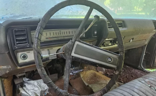 The go-power in this car is a 350 V8 with 130,000 miles on it. It apparently runs on starting fluid, but as rusty as every surface is, who knows what the engine internals look like? Perhaps the mice that were recently displaced when someone took it out of the field it might have been in. Once you get the mechanicals sorted, you’ll have a smooth-running car, ready to cruise with power steering and an automatic transmission. That was, after all, the formula that sold so many hundreds of thousands of GM cars of this generation and the ones that followed into the early 1970s.