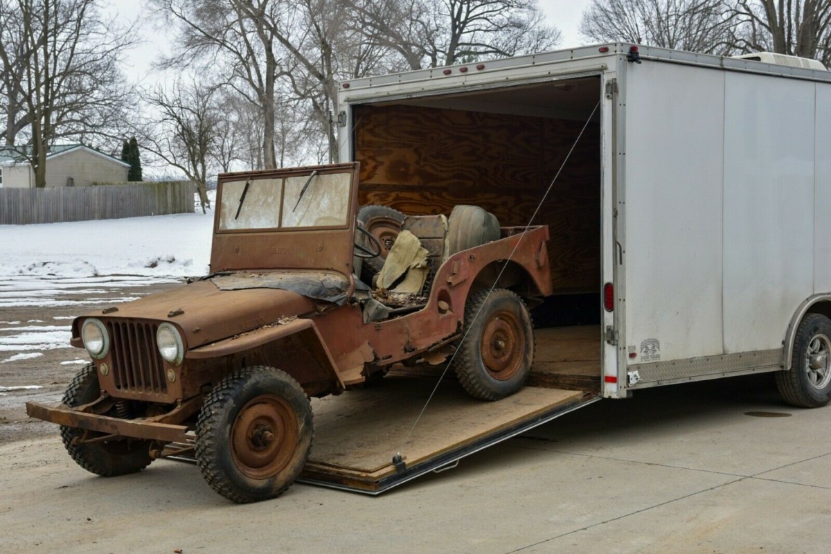Many servicemen came back from World War II very familiar with the basic Jeep and what it was capable of. Most CJs (Civilian Jeep) were sold to farmers for use as all-purpose vehicles, and I suspect this one is no exception. While the rust at first looks daunting, remember that many parts are available for these early Jeeps and that a lot of the sheet metal is flat anyway.