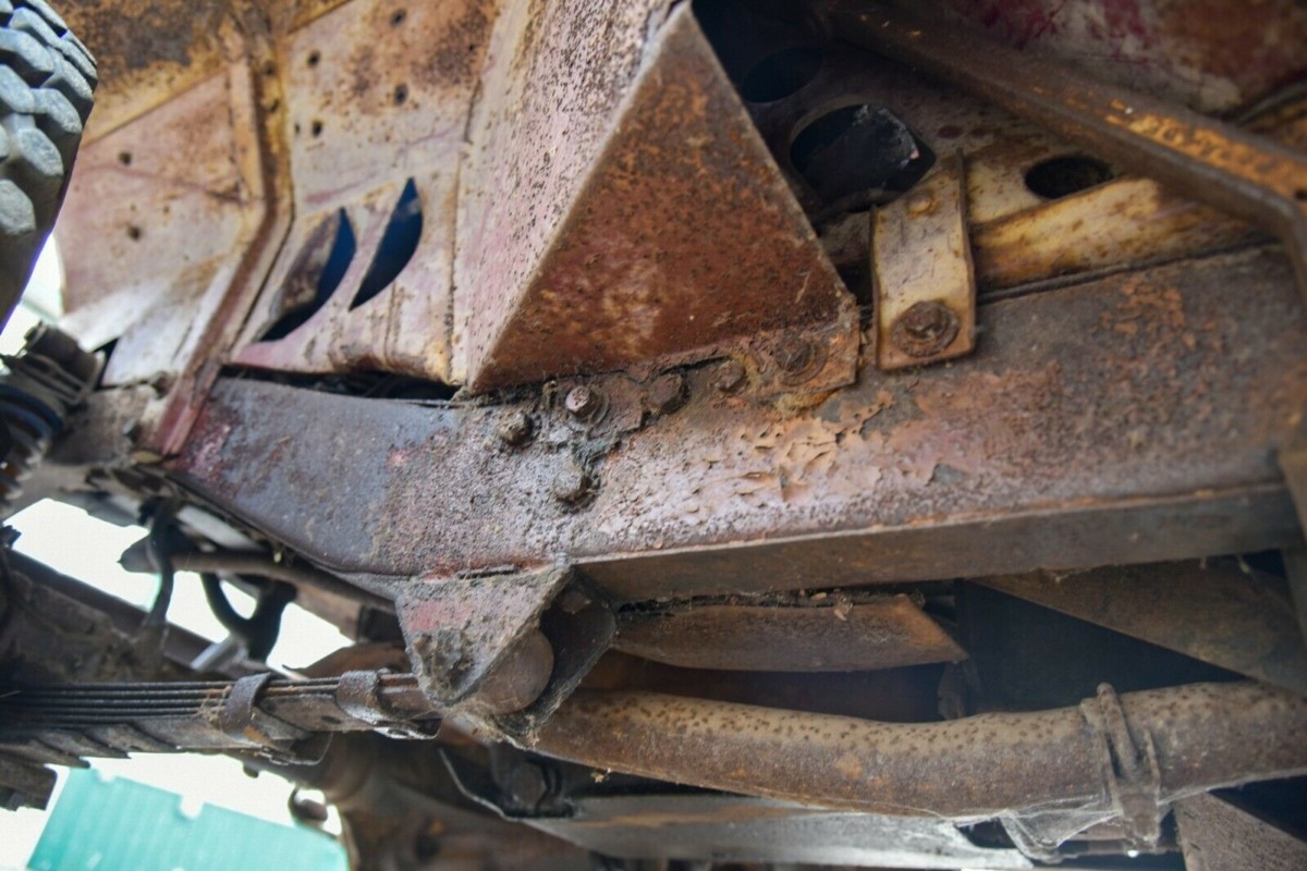 There is only one pic of the frame, why? The body is done it’s time for a new one. The transfer case and engine will both likely need to be overhauled, transfer case bearings and seals for sure. Buyer is going to need to spend some money and time to get it reliable and usable but it’s all fairly easy as usual it’s just time and money.