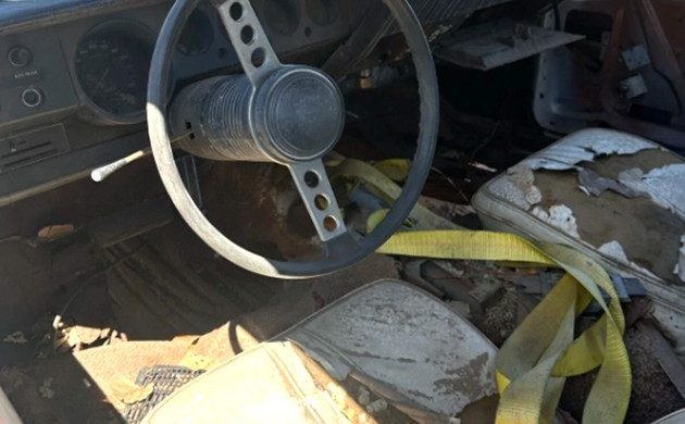 Spirits were no doubt high at Plymouth in 1970 as the Barracuda “pony car” was redesigned. It had a whole new platform shared with the Challenger over at Dodge. Sales were up 50% over 1969 but quickly fell off a cliff in 1971 (due to a saturated market and rising insurance premiums on muscle cars). This ’71 Plymouth used to be a ‘Cuda 340, but it has been stripped of critical hardware and Mother Nature has been chewing away on the Mopar. Located in the desert in Albuquerque, New Mexico, this “project” has been bid up to $9,700 here on eBay.